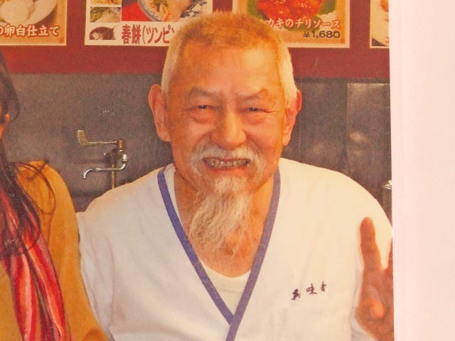 孔子感、強っ! 髭の長さとか、孔子の絵とそっくりだ。遺伝子受け継ぎすぎです(笑)僕は以前、訪店した時にお会いしましたが、こんな“仙人”のようなお姿をされてるのに、明るくてユーモアがあって、名物店主さんでした。現在は引退されて、息子さんの代にバトンタッチしたというわけですが、店内にはいつもこの仙人スマイルの写真が飾ってあり、僕らお客を温かく見守ってくれます。