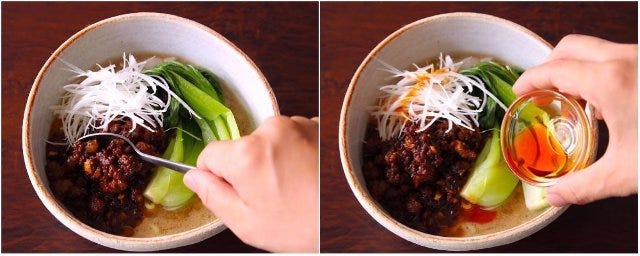 ⑧ 仕上げにラー油をかけたら完成。(※ラー油の量はお好みで調整する)