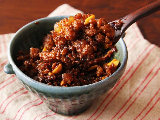 ゴロッとした肉感を残した、食べごたえのある自家製肉味噌が完成!