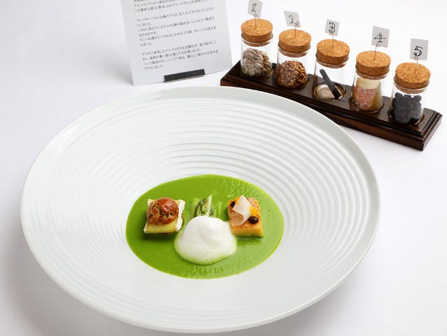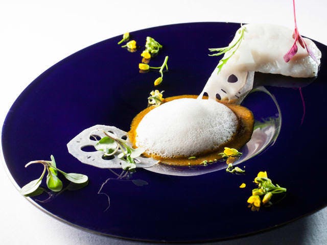 どの料理も絵画のような美しさが特徴だが、特に日本独自のテロワールを重視し、海の幸・山の幸をふんだんに使用した和テイストが魅力。