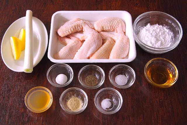 ① 手羽先はフォークで刺して、味が染み込みやすいようにする。ショウガはすりおろす。