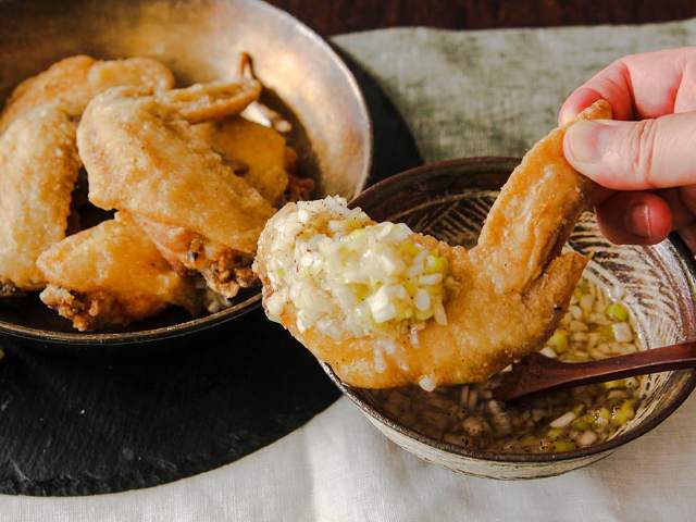 最後に紹介するのは、唐揚げなのにさっぱりといただける、夏にぴったりの「ネギ塩レモンだれの手羽先揚げ」。