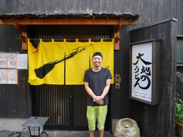 『大地のうどん』は、福岡と同じ黄色の暖簾が目印だ。今年の3月にオープンしてから半年。店内は常に九州のうどんの味を求めて来店する人たちで活気に溢れている。