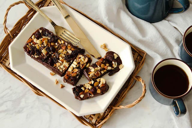 3.混ぜて冷やすだけ! 焼かずに作れる「ナッツとドライフルーツの濃厚ブラウニー」