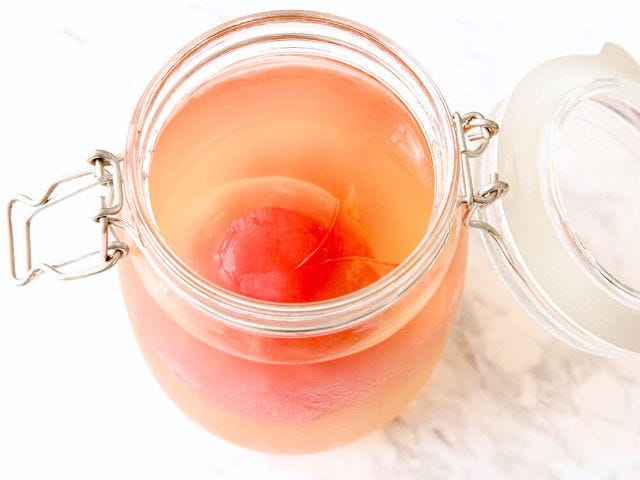 ③ 煮沸消毒をした耐熱保存容器に②を入れて粗熱を取り、8時間以上冷蔵庫に入れて置いておく。(※2日間を目安に食べきる)