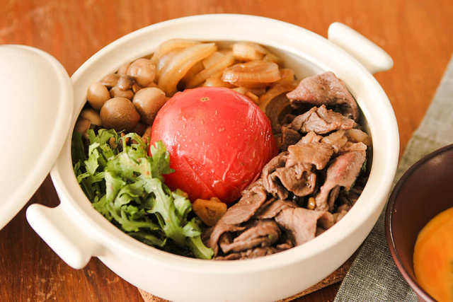 続いて紹介するのは、トマトのだしマリネを活用した「トマトすき焼き」の作り方。