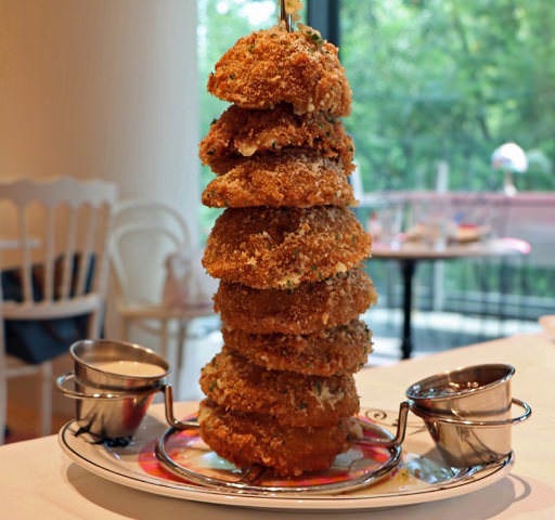 フードメニューも充実し、「エンパイア ステイト オニオンリング」(写真上)など、ビジュアルが楽しくお酒に合う料理も見逃せない。