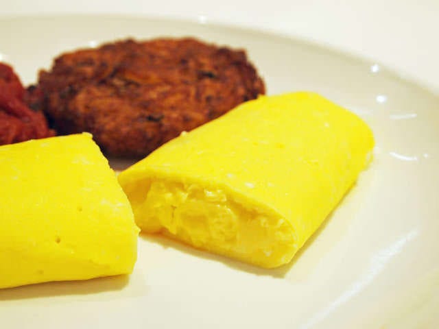 使用する卵は、ブルックリンの地元農家でとれる卵に近いものをオーナー自らがリサーチし選んだというこだわりよう。「ホワイトチェダーチーズ入りオムレツ グリルトマト」(写真上)はシンプルながら、こだわりの卵を味わえる贅沢な逸品。