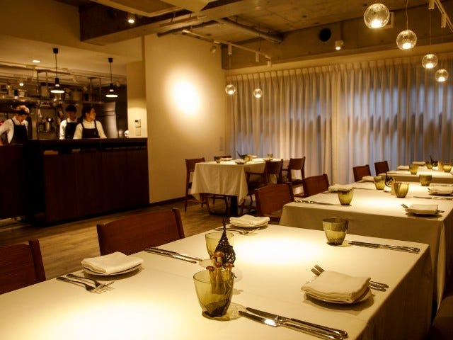シンプルなインテリア、真っ白でしわひとつないテーブルクロス、ここにのる赤木渉シェフの皿は個性豊かな芸術作品のようだ。