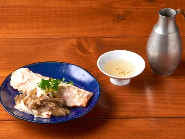 さて、この蒸し物に合わせたいおすすめのアルコールが、広島『竹鶴酒造』の「竹鶴 純米 八反」の2014年ものだ。熟成された淡い橙色が美しいこの日本酒は、料理を選ばない食中酒として評価が高い「竹鶴」純米酒のなかでも、とりわけ高い酸の風味が特徴。燗酒にするとさらに芳醇な味わいが際立ち、どこか紹興酒を感じさせる。パンチの強い秋鮭の蒸し物をしっかりと引き立ててくれるだろう。