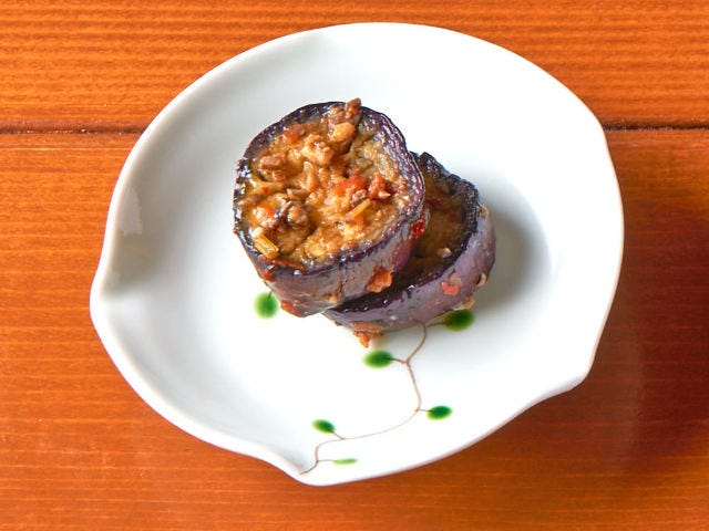 「魚香茄子」は、四川料理でポピュラーに食べられている料理。「魚香(ユイシャン)」とは、唐辛子や生姜などの香辛料とフナなどの川魚を一緒に塩漬けして、香辛料に魚の風味を移した伝統的な調味料のこと。『壱年茶虎』ではイワシの塩漬けを自家製し、予めグリルしておいた茄子にこの塩漬けイワシとトマト、ネギ、生姜、パクチー、赤唐辛子、紹興酒、ガラスープなどを炒め合わせて、パンチのあるうま辛の茄子料理に仕上げている。