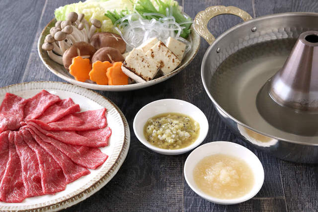 ② お好みの材料でしゃぶしゃぶ鍋をして、タレを付けていただく。