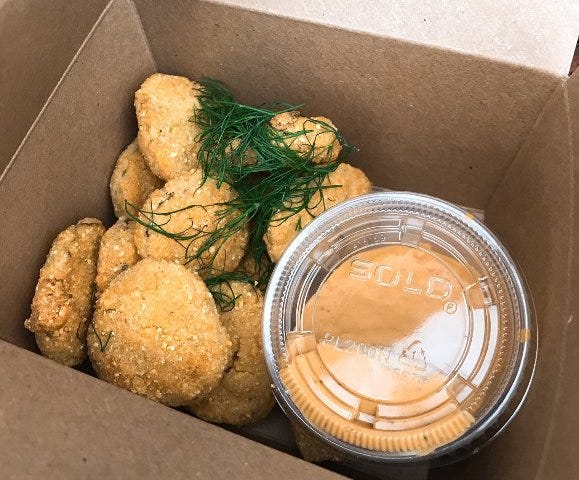 ピクルスのフライ $6.00(サンドイッチの付け合わせでオーダーした場合は$3.00)