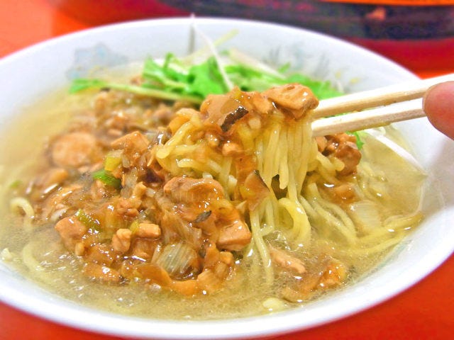 「三崎まぐろラーメン」(写真上)は、B-1グランプリ入賞経験もあるB級グルメ。マグロでだしをとった、あっさりしたスープに、マグロと野菜を使った餡をトッピング。マグロがゴロゴロ入った餡が麺と絶妙に絡み、最後まで食べ飽きない。