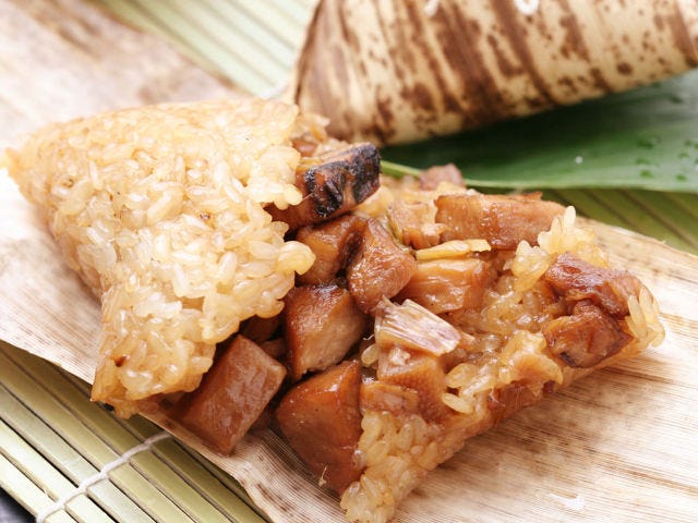 マグロをたけのこやネギといった具材と一緒に醤油の角煮にし、国産もち米に包んで蒸しあげた一品。ジューシーなマグロともち米の相性がばっちりだ。