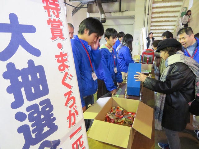 なんとマグロ1匹が当たるという、豪快な大抽選会をはじめとして、サメやウニなどに触れることができる「タッチングプール」や巨大なマグロの体重を予想するという「まぐろの体重当てクイズ」など、親子で盛り上がれるイベントも多数開催される。