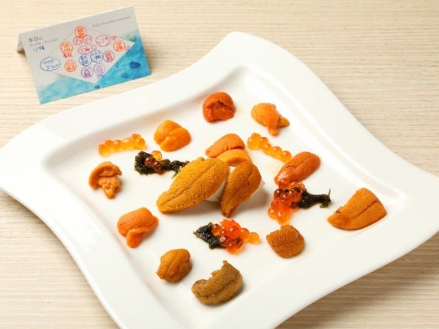 一番人気の「ウニの食べ比べ」(写真上)は、9種を超えるウニが載った圧巻の一皿。