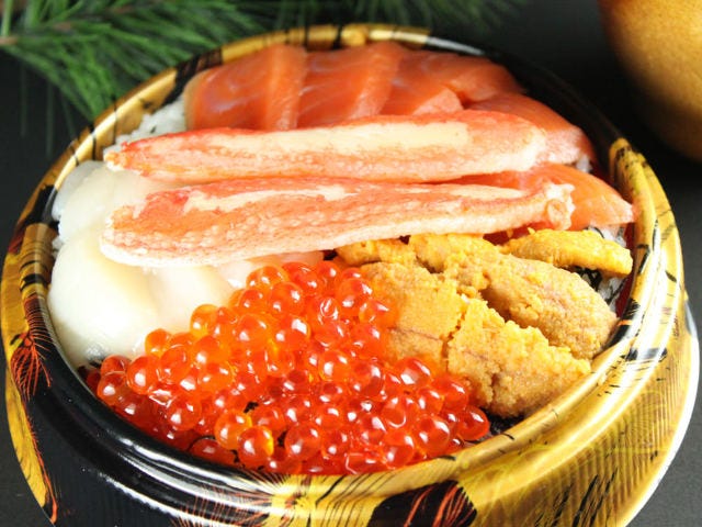 同イベントに初登場する「5種盛り海鮮丼」(写真上)は、 イクラ、ほたて、鮭、ウニ、ズワイガニの北海道を代表する豪華な海の幸がつまった海鮮丼。東京にいながらにして北海道の海の幸を贅沢に堪能できるチャンスは見逃せない。
