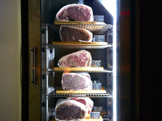 なお、フレッシュな状態から肉を仕入れて現場で加工しているため、同店では通常よりもかなりリーズナブルに熟成肉が食べられる。ちなみに、熟成が進むにつれ、表面が硬化し実際に食べることのできる部分が少なくなってしまうので、ある程度大きな塊肉を購入するのがおすすめだそう。
