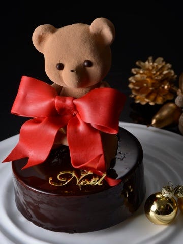 メインはチョコレートでできた真っ赤なリボンをかけた“NOUNOURS(ヌヌース=フランス語でテディベア)”が、濃厚なチョコレートケーキの上に鎮座するクリスマスならではの特別なケーキ「ヌヌース ノエル 2017」(写真上)。