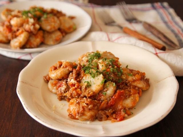 ■肉感ゴロゴロ!食感が楽しい「さといもニョッキのボロネーゼ」