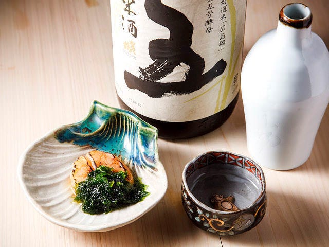 この日先付けに合わせてたしなんだのは、秋田県産の純米吟醸「美酒の設計」(『齋彌酒造店』・写真上)。山田錦の中でも等級が高い“特等”米100%で造られており、なめらかな飲み口に、しっかりとした米のうまみが感じられる。