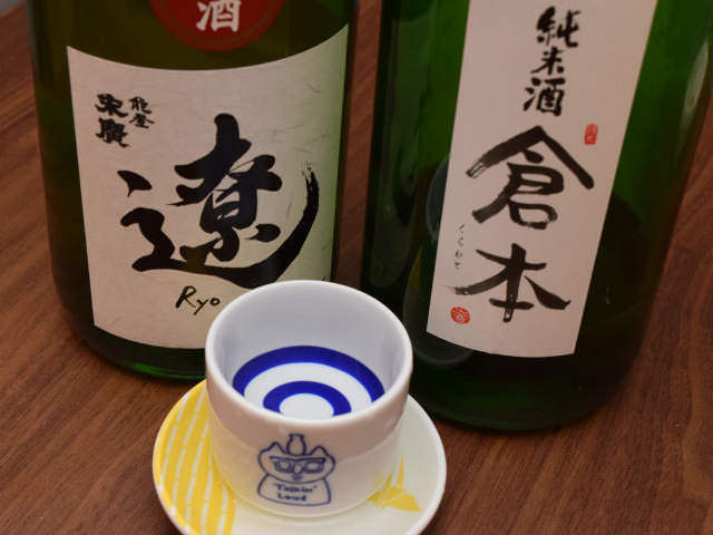 店の顔は、オーナーが直接酒蔵に交渉し特別に卸してもらった「純米酒 倉本」(奈良県)と、常温で1年寝かせ、陽に照らされた透き通った琥珀のような色あいと黒糖のようなコク、すっきりとした喉越しがたまらない熟成酒「能登末廣 遼」(石川県)(写真上)。
