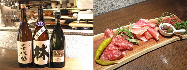 塩気のきいた濃厚な味わいのイタリア産生ハムには、高級シャンパーニュを思わせるボトルの「Michelle」(長野県佐久市『伴野酒造』)など、酒ソムリエ厳選の銘酒がよく合う。日本酒初心者にも優しく寄り添う、新鮮な食体験が待っている。