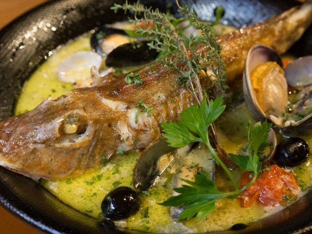 本日の鮮魚のアクアパッツァ 1,500円~ (この日のホウボウは2,000円)