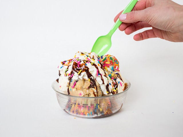 一番人気は「チョコレートチップクッキードゥ」。やっぱりアメリカ人はチョコチップクッキーが大好きだ。他にもドゥとアイスをミックスさせたアレンジや、焼いたクッキー、グルテンフリーなど、バリエーションもさまざまなので、アメリカンな甘さを体験したいなら、押さえておきたい店だ。