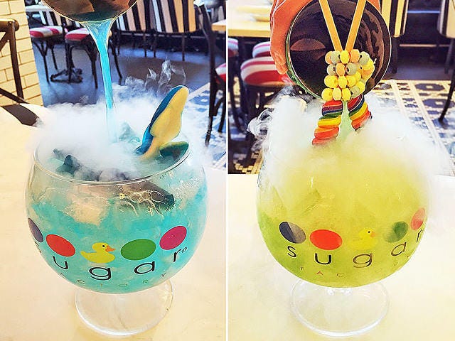 USA TODAYが発表した2016年アメリカで最もインスタグラムの写真がシェアされたレストラン、『Sugar Factory(シュガーファクトリー)』。フォトジェニックなスイーツ揃いだが、人気があるのはドリンク類だ。オーバーサイズのゴブレットの底からドライアイスの泡が湧き上がる「ロリポップパッション」と「オーシャンブルー」(写真上)は必見!