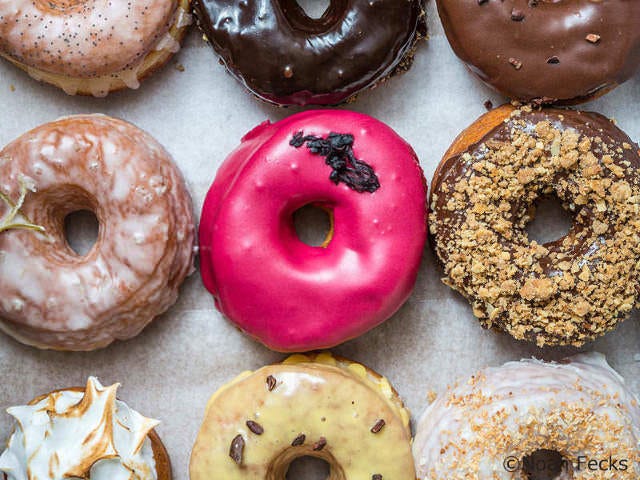オススメは、ここにしかないハイビスカスクリームのかかった鮮やかなピンクのドーナツ。NYでは美容食材としてポピュラーなので、女性ウケが良いのだとか。