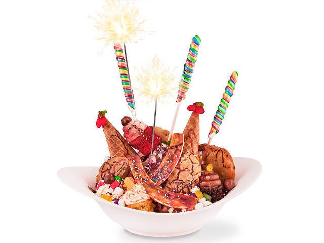 その他もバースデーで人気の高い「キングコングサンデー」(写真上)などド派手なスイーツが有名だが、甘くない料理も豊富なので、こどもも大人も楽しめるはずだ。
