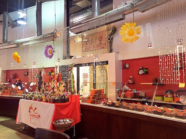 試食ができたり、30分ごとにデモンストレーションが見られるコーナーもあり、時にはオーナーのジャックさん自らが登場することも! 最後はショップ兼カフェで一息つくのも良い。
