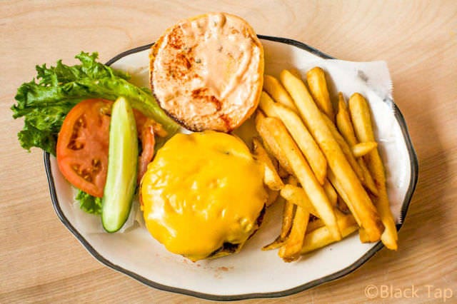 この店には、名物スイーツの他においしいバーガーメニューがあるので、ハンバーガーとミルクシェイクをシェアするのもオススメだ。
