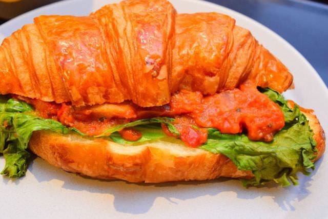定番の「ハムチーズ」に、ヘルシーな「ベーコンアボカド」、そして一番人気の「ラタトゥイユ」(写真上)はバターたっぷりのクロワッサンと野菜の甘みが溶け込んだラタトゥイユがマッチした絶品だ。