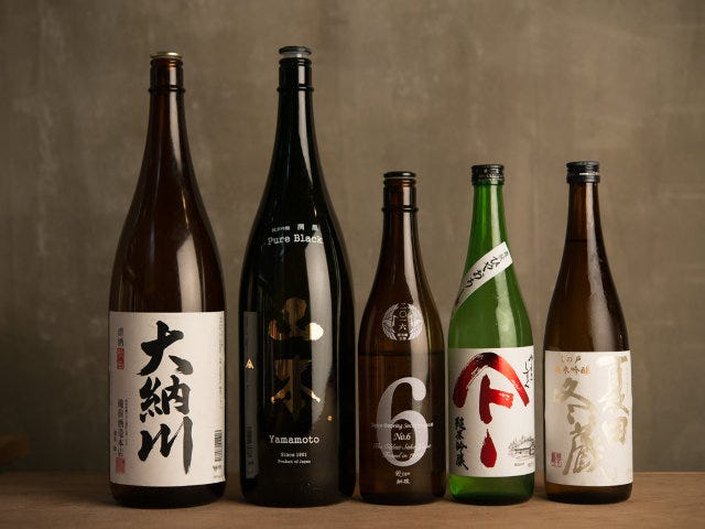 日本酒のラインナップは秋田のものが中心。新しい銘柄との入れ替えもよくあるので、気になるお酒があれば、その日のうちに頼んでみるのがおすすめだ。味わいや口当たりはさまざまなものをそろえており、例えば「大納川」(写真上:左端)はさっぱりとした辛口、「夏田冬蔵」(写真上:右端)は口当たりがよく、冷やで飲むのがおいしいそうだ。