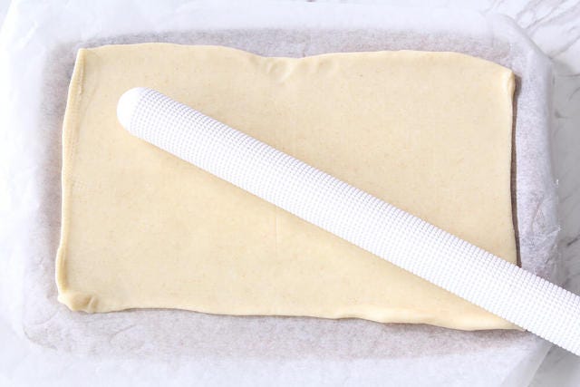 ③ 生地を取り出し、めん棒で5mmぐらいの厚さに伸ばす。