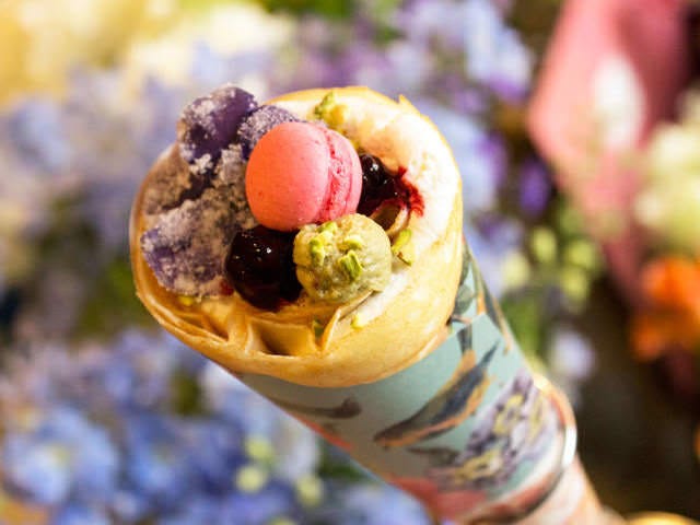 花束のようなクレープを一口かじれば、幸せな気分に浸れること間違いなしだ。