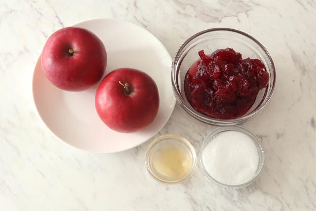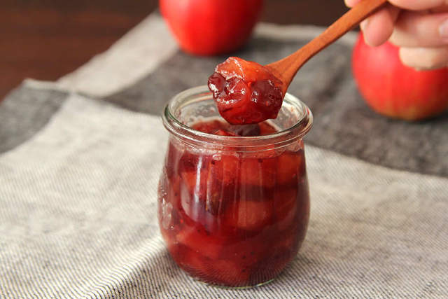 煮詰めるだけだが、ポイントはリンゴ選び。加熱に向いた「紅玉」を使うことで、香り高く深みのある味が出て、クランベリーとの相性も◎。