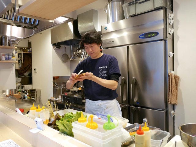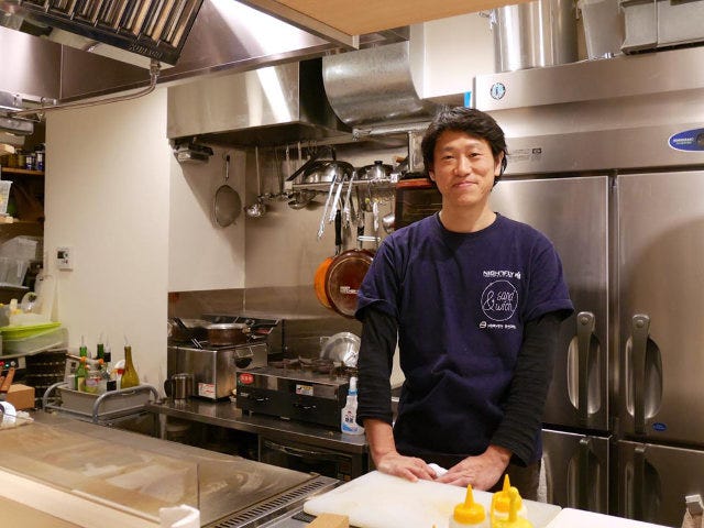 オーナーの前田幸紀さんが初めて「サンドイッチ屋をやりたい」と思ったのは、大学卒業後に就職した大手食品メーカーの営業職時代。鉄板の上でパンや具材を焼いた温かいサンドイッチを食べて深く感銘を受けたのがきっかけだった。