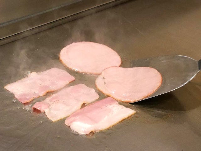 「クラブハウスサンド」のハムやベーコンはキッチンに導入された鉄板で焼いている。移転前の渋谷の店舗では、鉄板スペースがなかったためフライパンで焼いていた。今後はサンドイッチだけではなく鉄板を生かした料理やおつまみなどの提供を予定しているのだそう。