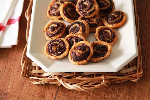 伸ばしたパイシートにチョコレートを塗って巻くだけなので、パイ生地を扱ったことがないという人でも気軽に挑戦できる。巻いたパイ生地をカットするときには、一度冷凍庫で冷やし固めておくことで、潰さずに綺麗な形をキープすることができる。