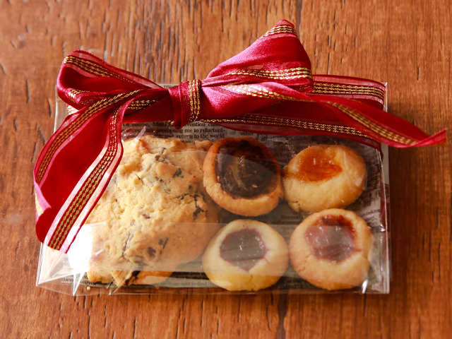 まず紹介するのが、3種類のジャムの色合いがかわいく、見栄えばっちりの「ジャムのせクッキー」。