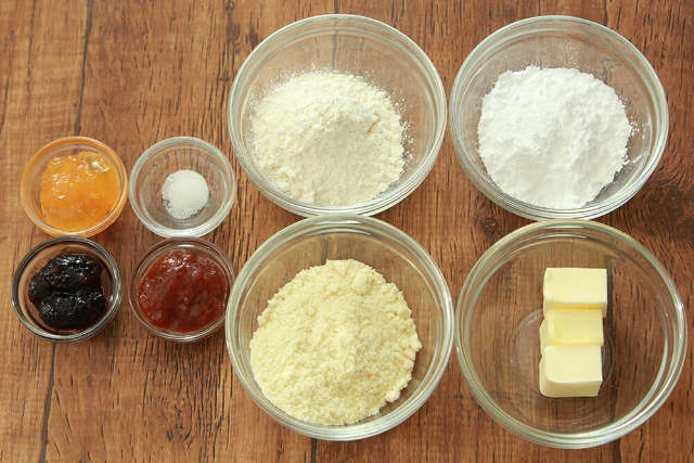 ジャムを綺麗にのせるのは難しく思えるかもしれないが、方法は意外と簡単。生地にくぼみを作って、ジャムを流し込むだけでOKだ。