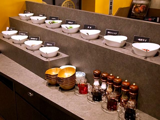 そのままでも十分おいしいが、多種多様な調味料を使って自分の好みにスープの味をカスタマイズできるのが同店の大きな特徴である。