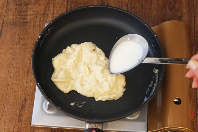 【point3】牛乳は少量ずつ入れて、丁寧に練りあげる