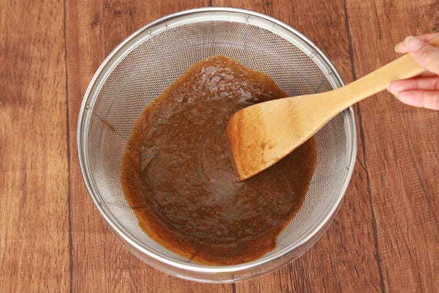 ⑥ ザルに入れ、ヘラで潰すようにしながら ⑤を濾す。