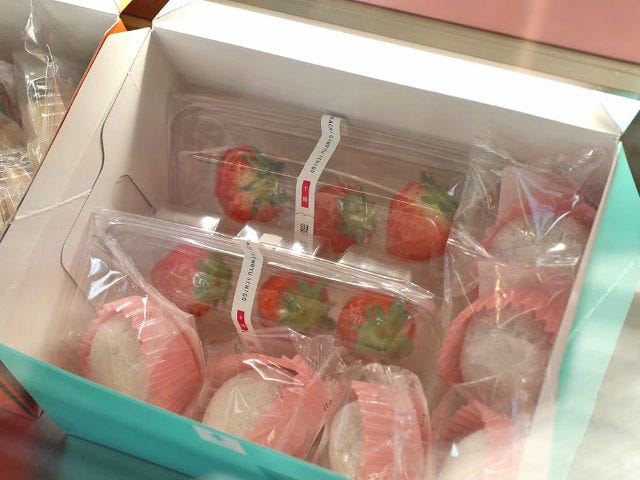 店舗では、ギフトにぴったりなパッケージも用意している。自分用に「あとのせ苺大福」を買った人が、リピーターになって3個セットや6個セットを手土産に買っていくことも多いという。