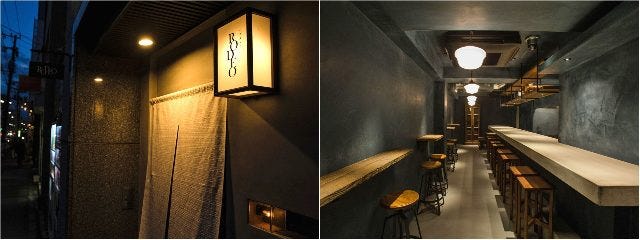『ロデオ』の入り口はのれんに引き戸(写真上・左)。まるでモダンな割烹料理店のような佇まいに胸が高鳴る。
